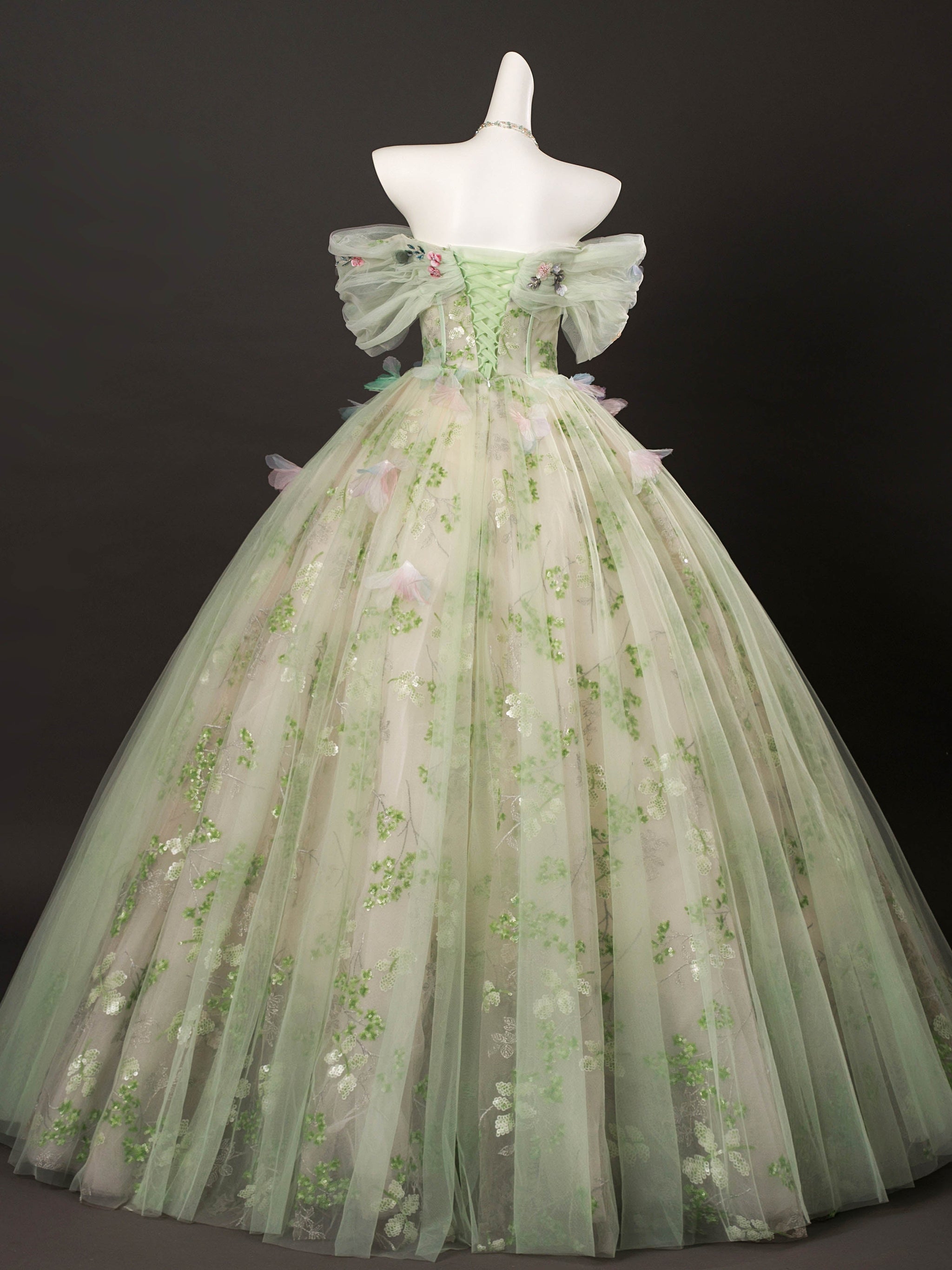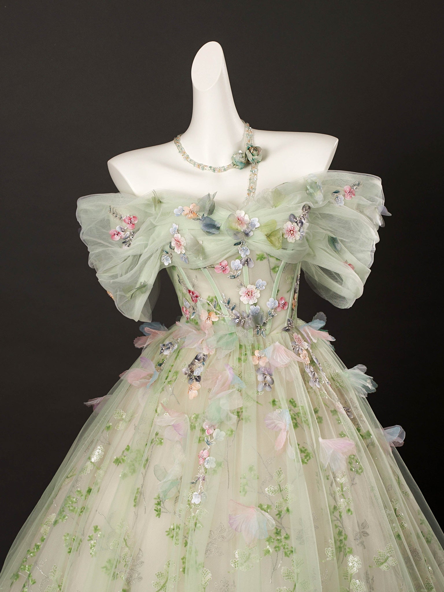 Step into unforgettable elegance with this A-Line off-shoulder tulle lace green long prom dress, a sophisticated choice for prom nights, formal events, evening galas, and special celebrations. Designed with a timeless A-line silhouette, this floor-length gown flatters the figure while offering graceful movement and a romantic presence.