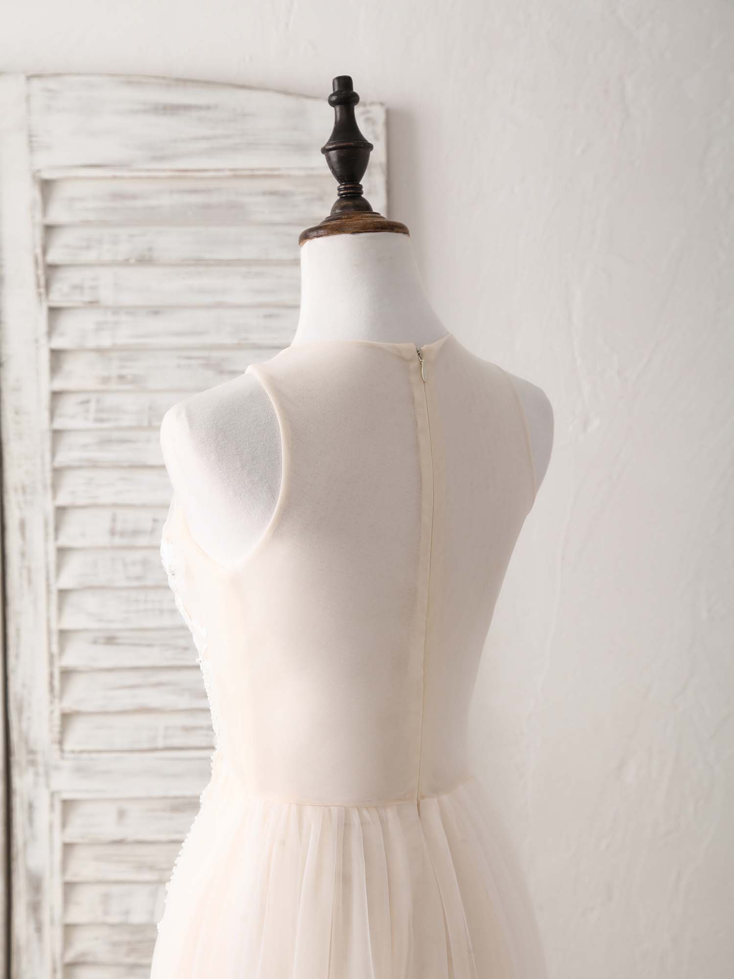 • Embellishment: 3D Floral Appliqué, Illusion Bodice