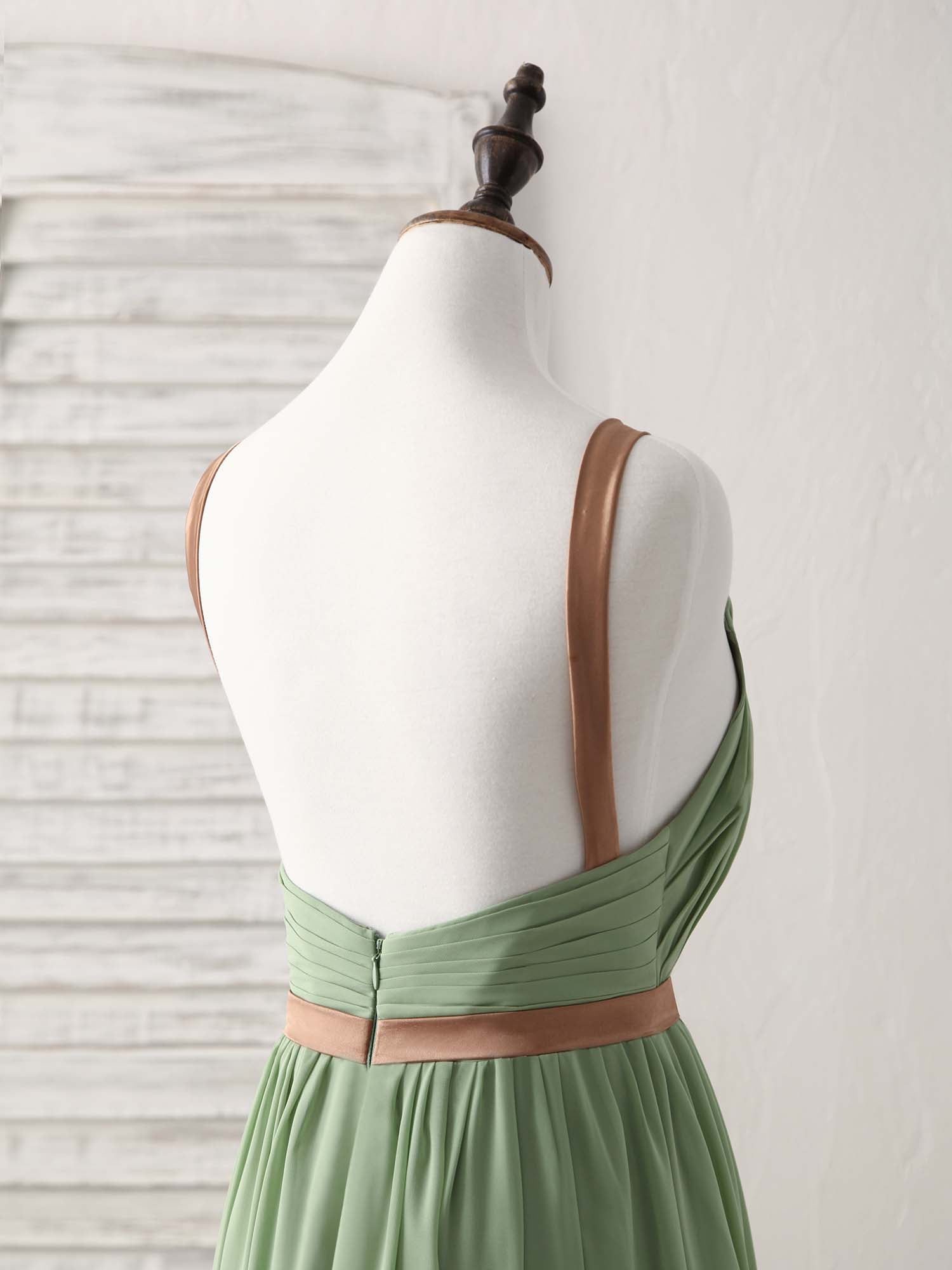 Elegantly draping in chiffon, this A-line prom dress features a flattering V-neck design with delicate pleating details. The floor-length skirt offers a graceful silhouette, making it perfect for formal occasions. The added touch of the contrasting belt enhances the look, giving this dress a chic and sophisticated vibe. Ideal for a memorable prom night or any elegant event.